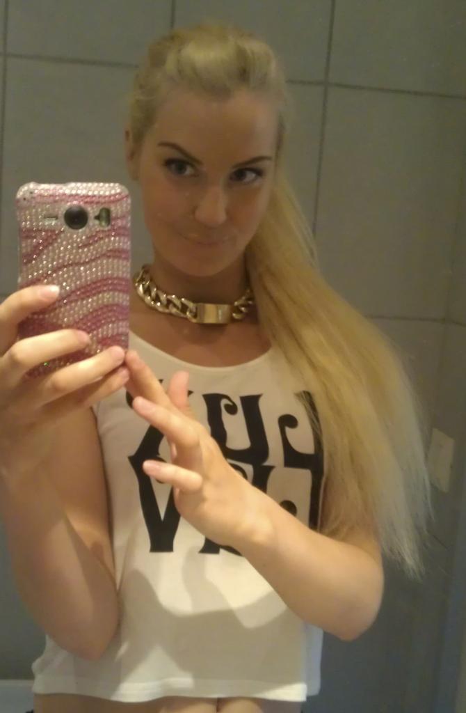 Laitoin nyt liimattavat ripset itselleni ja tiukan ponnarin ylös ja hieman tupeerasin etuhiuksiani ja laitoin pinnillä pois otsalta. Ostin hetki sitten uuden kaulakorun ja nyt sitten pääsin sitä toista kertaa käyttämään. Se on kullan värinen ja tykkään siitä että se on hieman ”kaulapanta” tyylinen, ei siis mikään pitkä ja roikkuva 🙂 Silmiini laitoin ensin eyelinerillä palsut mustat kissamaiset rajaukset, jonka jälkeen liimasin tekoripset. Sen jälkeen lisäsin vielä ripsiväriä ja hyvin vaalean rusehtavaa/ihonsävyistä luomiväriä missä on pikkuisen hohtoa. Kun on niin mahtipontiset ripset ja rajaukset niin korostan vain niitä sillä tavalla että jätän luomivärin ihan neutraaliksi. Silloin silmät näyttää suuremmilta, kun taas musta luomiväri pienentää niitä, ainakin minun mielestä 😀