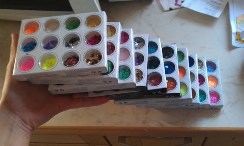 Nyt on ostettu lisää geelikynsiin käytettäviä glittereitä. On kaiken muotoista ja väristä. Tilasin nyt sitten kerralla monta paketillista, niin ei tarvitse heti alkaa ostaa lisää.